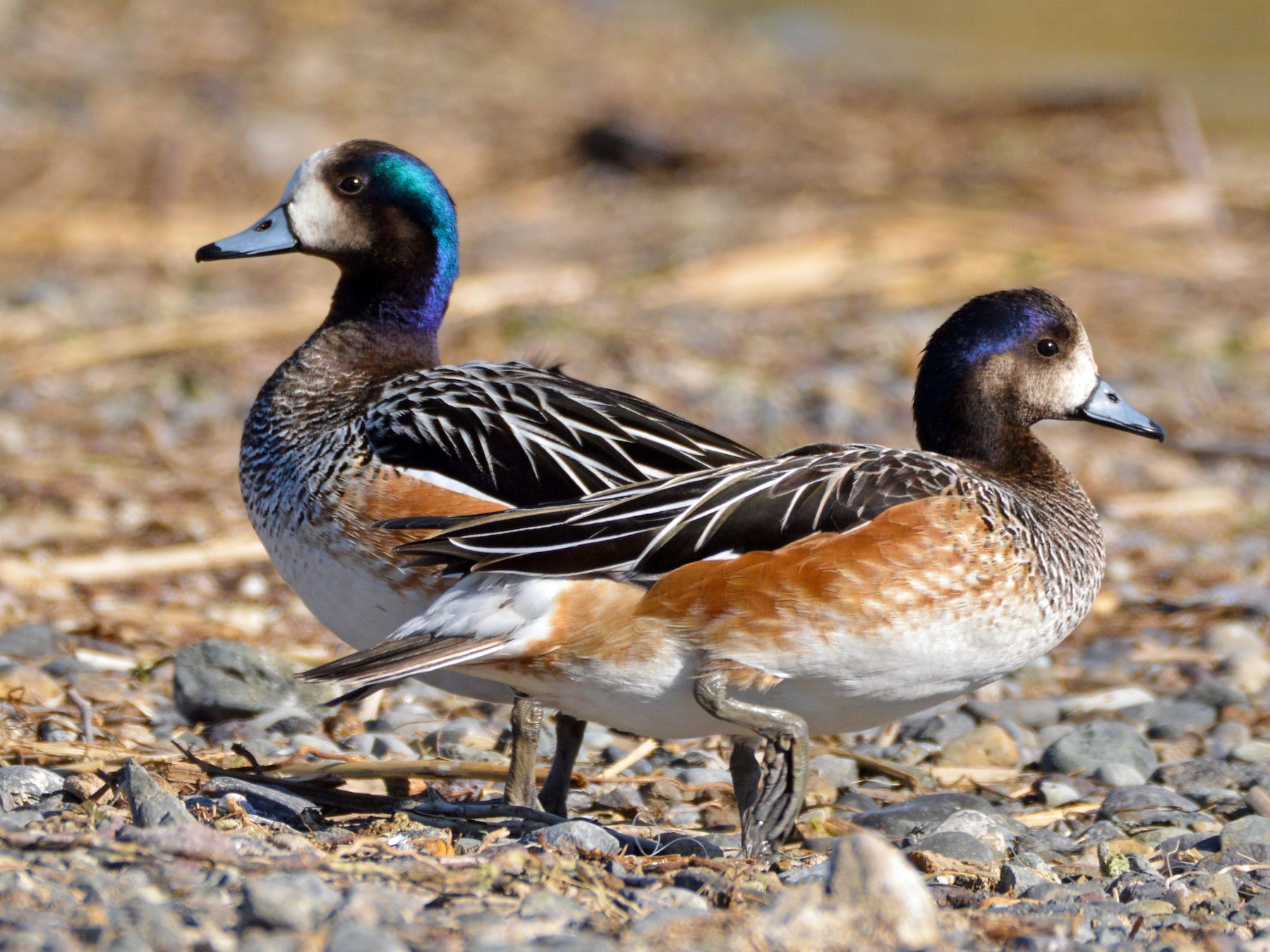 Sexual dimorphism is comparatively delicate on this species of wigeon. Males are normally considerably bigger and heavier, and with considerably brighter plumage and more strongly pronounced iridescence of the cap.