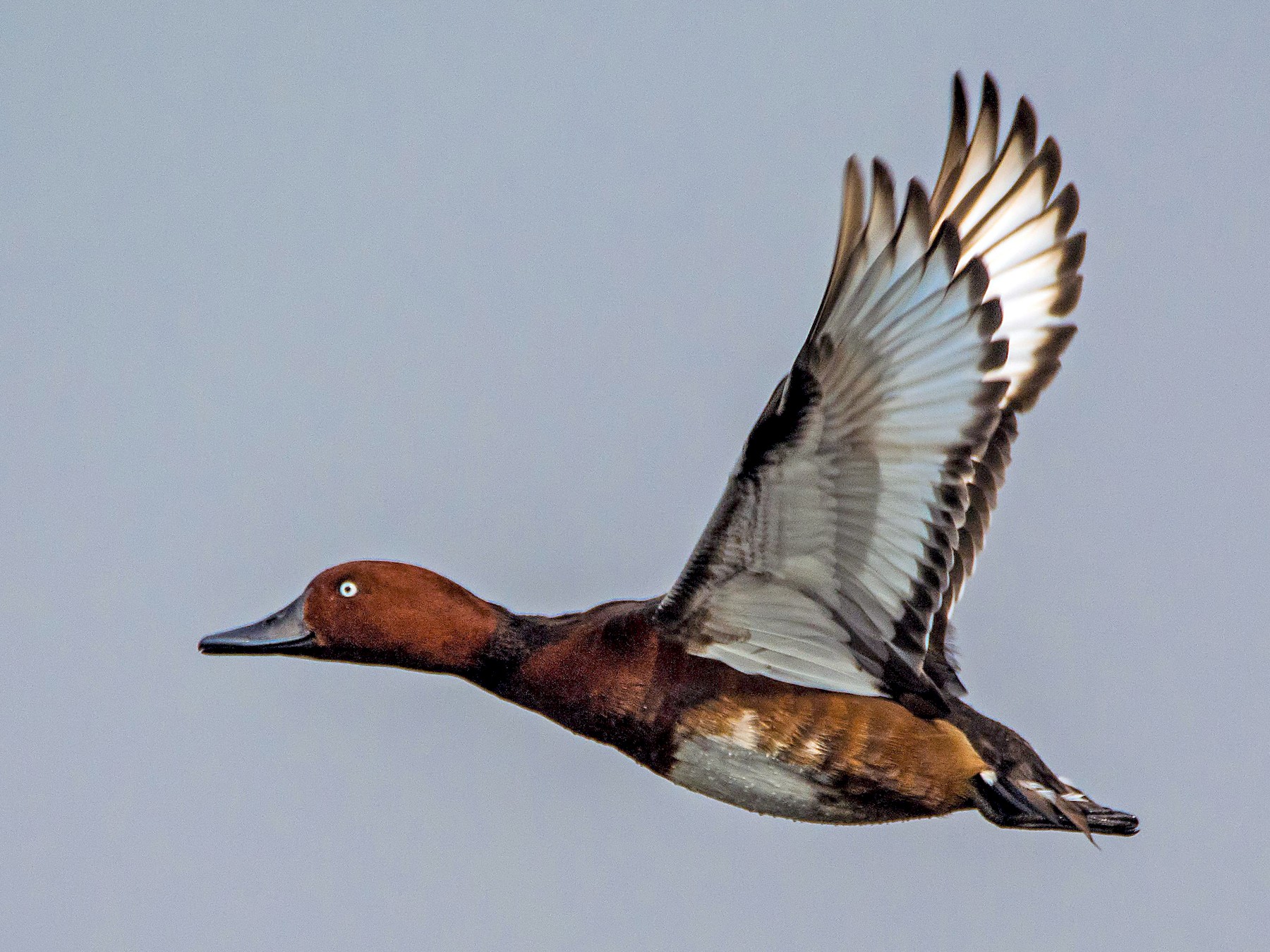 The adult male is a wealthy chestnut color with a darker back and a yellow eye. The pure white undertail helps to differentiate this species from the considerably comparable Tufted Duck. The feminine is comparable however duller and with a darkish eye.